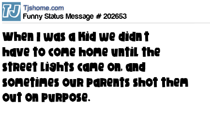 X says When I was a kid we didn’t have to come home until the street lights came on, and sometimes our parents shot them out on purpose.