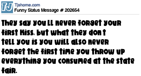 X says They say you’ll never forget your first kiss, but what they don’t tell you is you will also never forget the first time you throw up everything you consumed at the state fair.