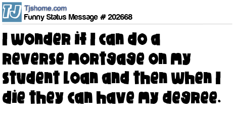 X says I wonder if I can do a reverse mortgage on my student loan and then when I die they can have my degree.
