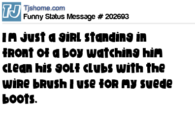 X says I’m just a girl standing in front of a boy watching him clean his golf clubs with the wire brush I use for my suede boots.