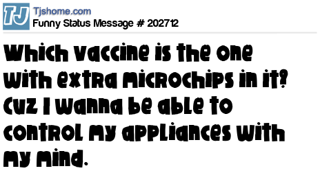 X Which vaccine is the one with extra microchips in it? Cuz I wanna be able to control my appliances with my mind.