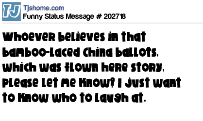 X is Whoever believes in that bamboo-laced China ballots, which was flown here story, please let me know? I just want to know who to laugh at.