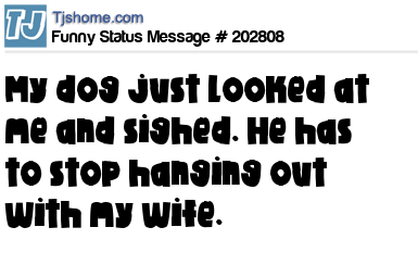 X says My dog just looked at me and sighed. He has to stop hanging out with my wife.