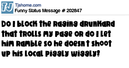 X says Do I block the raging drunkard that trolls my page or do I let him ramble so he doesn’t sh00t up his local piggly wiggly?
