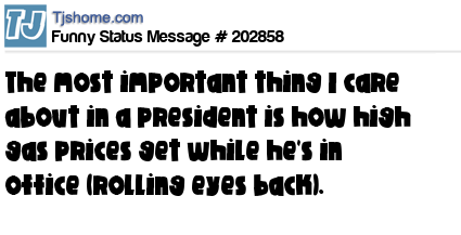 X is The most important thing I care about in a president is how high gas prices get while he's in office (rolling eyes back).