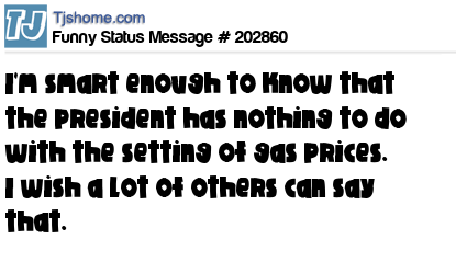 X is I'm smart enough to know that the president has nothing to do with the setting of gas prices. I wish a lot of others can say that.