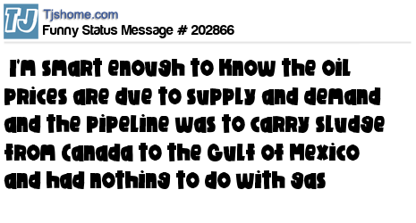 X says I'm smart enough to know the oil prices are due to supply and demand and the pipeline was to carry sludge from Canada to the Gulf of Mexico and had nothing to do with gas
