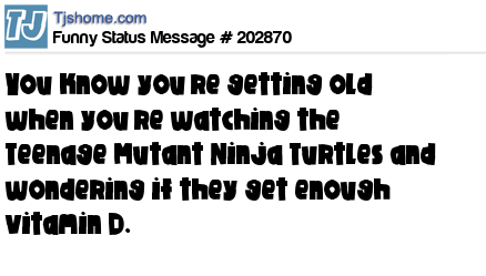 X says You know you’re getting old when you’re watching the Teenage Mutant Ninja Turtles and wondering if they get enough vitamin D.