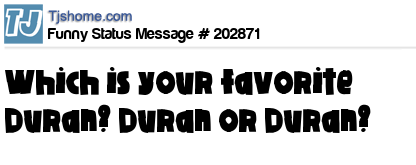 X says Which is your favorite Duran? Duran or Duran?