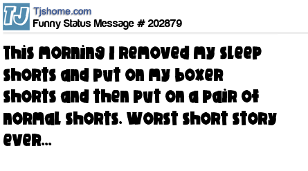 X says This morning I removed my sleep shorts and put on my boxer shorts and then put on a pair of normal shorts. Worst short story ever...