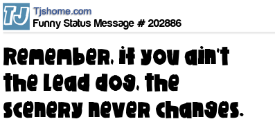 X says Remember, if you ain't the lead dog, the scenery never changes.