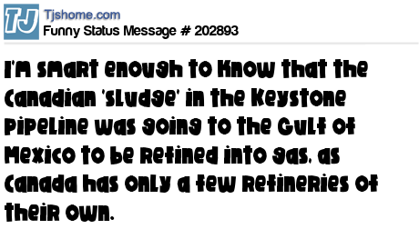 X is I'm smart enough to know that the Canadian 'sludge' in the Keystone pipeline was going to the Gulf of Mexico to be refined into gas, as Canada has only a few refineries of their own.