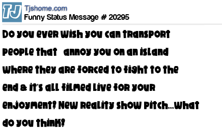 X says Do you ever wish you can transport people that annoy you on an island where they are forced to fight to the end & it's all filmed live for your enjoyment? New reality show pitch...what do you think?