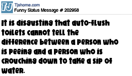 X says It is disgusting that auto-flush toilets cannot tell the difference between a person who is peeing and a person who is crouching down to take a sip of water.