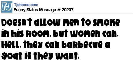 - # 24204 I don't allow men to smoke in my room, but women can. Hell, they can barbecue a goat if they want.
