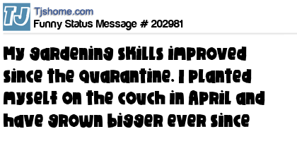 X says My gardening skills improved since the quarantine. I planted myself on the couch in April and have grown bigger ever since