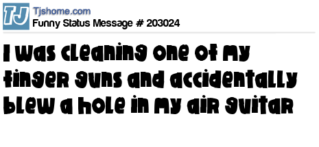 - # 158433 I was cleaning one of my finger guns and accidentally blew a hole through my air guitar.