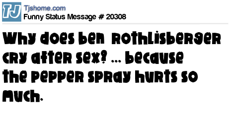 X why does ben rothlisberger cry after sex? ... because the pepper spray hurts so much.