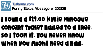 X says I found a 129.00 Kylie Minogue concert ticket nailed to a tree, so I took it. You never know when you might need a nail.