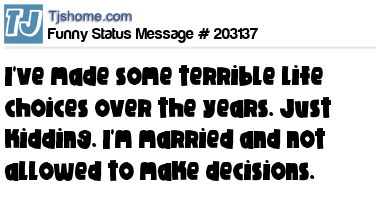 X says I've made some terrible life choices over the years. Just kidding. I'm married and not allowed to make decisions.