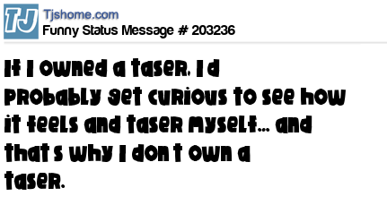 - # 164587 If I owned a taser, I'd probably get curious to see how it feels and taser myself. That's why I don't have a taser.