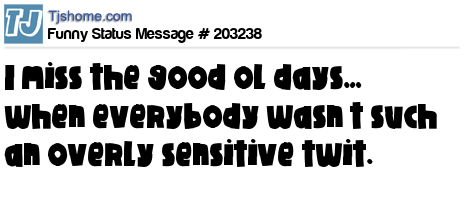 X says I miss the good ol days… when everybody wasn’t such an overly sensitive twit.