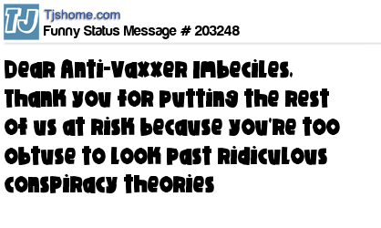 X says Dear Anti-Vaxxer Imbeciles, Thank you for putting the rest of us at risk because you're too obtuse to look past ridiculous conspiracy theories