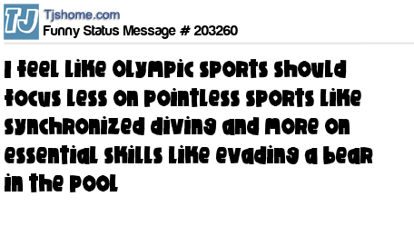 X says I feel like Olympic sports should focus less on pointless sports like synchronized diving and more on essential skills like evading a bear in the pool