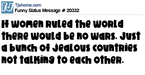 - # 22670 : If women ruled the world there would be no wars. Just a bunch of jealous countries not talking to each other!