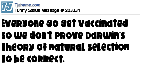 X is Everyone go get vaccinated so we don't prove Darwin's theory of natural selection to be correct.
