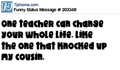 X says One teacher can change your whole life. Like the one that knocked up my cousin.