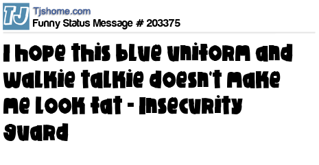 X says I hope this blue uniform and walkie talkie doesn't make me look fat - Insecurity guard