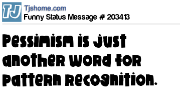 - # 179580 Pessimism is just an ugly word for pattern recognition.