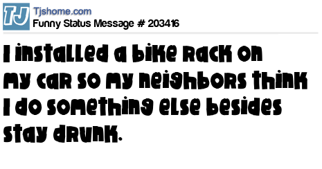 - # 196277 I installed a bike rack on my car so my neighbors think I do something else besides drink.