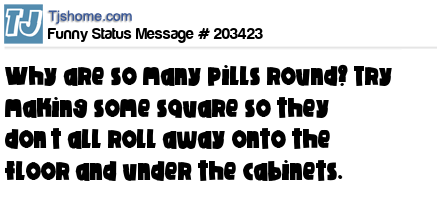X says Why are so many pills round? Try making some square so they don’t all roll away onto the floor and under the cabinets.