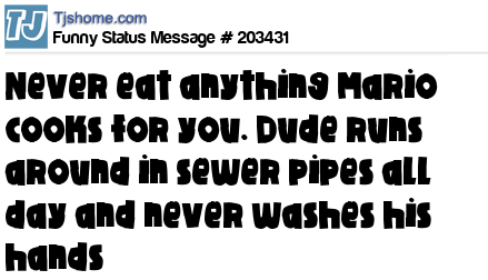 X says Never eat anything Mario cooks for you. Dude runs around in sewer pipes all day and never washes his hands