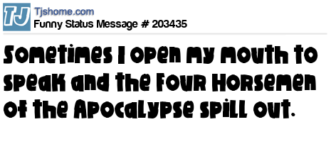 X says Sometimes I open my mouth to speak and the Four Horsemen of the Apocalypse spill out.