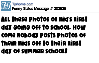 - # 209088 How come no one posts pictures of their kids on the first day of summer school?