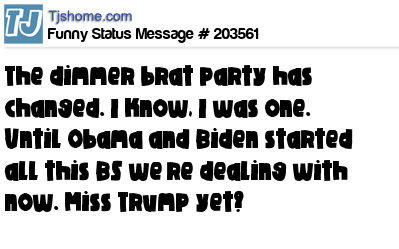 X says The dimmer brat party has changed. I know, I was one. Until Obama and Biden started all this BS we’re dealing with now. Miss Trump yet?