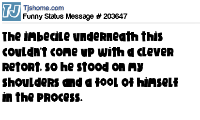 X says The imbecile underneath this couldn't come up with a clever retort, so he stood on my shoulders and a f00l of himself in the process.