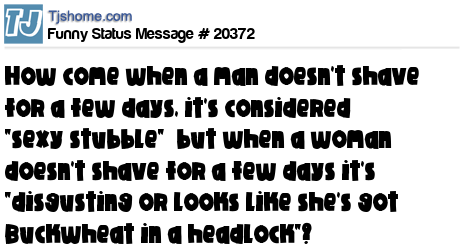 X says How come when a man doesn't shave for a few days, it's considered "sexy stubble" but when a woman doesn't shave for a few days it's "disgusting or looks like she's got Buckwheat in a headlock"?