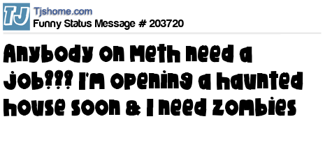 X says Anybody on Meth need a job??? I'm opening a haunted house soon & I need zombies