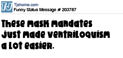 - # 21597 The other night a mugger took off his mask and made me wear it.