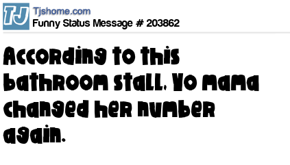 - # 116785 According to this bathroom stall, my ex changed her number again.