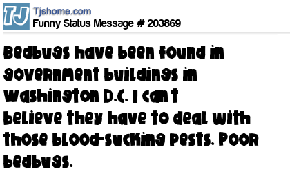 X says Bedbugs have been found in government buildings in Washington D.C. I can’t believe they have to deal with those blood-sucking pests. Poor bedbugs.