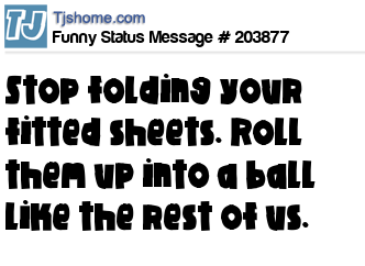 - # 144783 When I try to fold fitted sheets it looks like I’m in an infomercial that’s exaggerating how difficult it is to fold fitted sheets.
