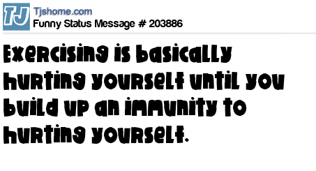 X says Exercising is basically hurting yourself until you build up an immunity to hurting yourself.