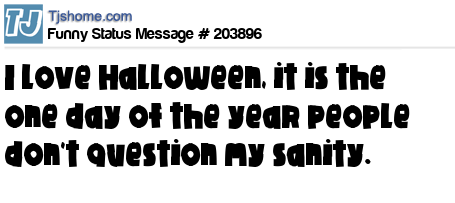X says I love Halloween, it is the one day of the year people don't question my sanity.
