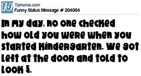 X says In my day, no one checked how old you were when you started kindergarten. We got left at the door and told to look 5.