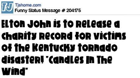 X is Elton John is to release a charity record for victims of the Kentucky tornado disaster! "Candles In The Wind"